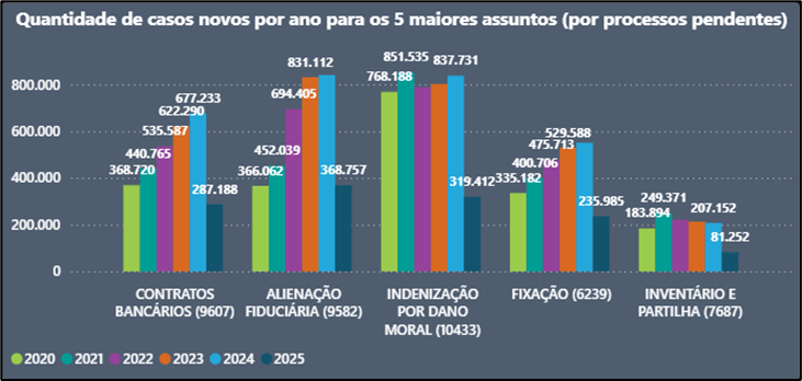 Com base nos dados disponíveis no DataJud, instituído pela Resolução nº 331/2020 como fonte primária de dados do Sistema de Estatística do Poder Judiciário, o CNJ aponta um crescimento exponencial de processos derivados do setor do agronegócio: